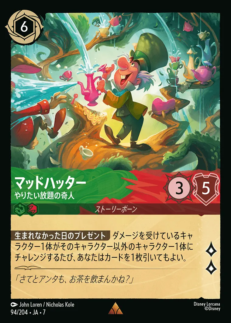 | 【生まれなかった日のプレゼント】 ダメージを受けているキャラクター1体がそのキャラクター以外のキャラクター1体にチャレンジするたび、あなたはカードを1枚引いてもよい。 | ||