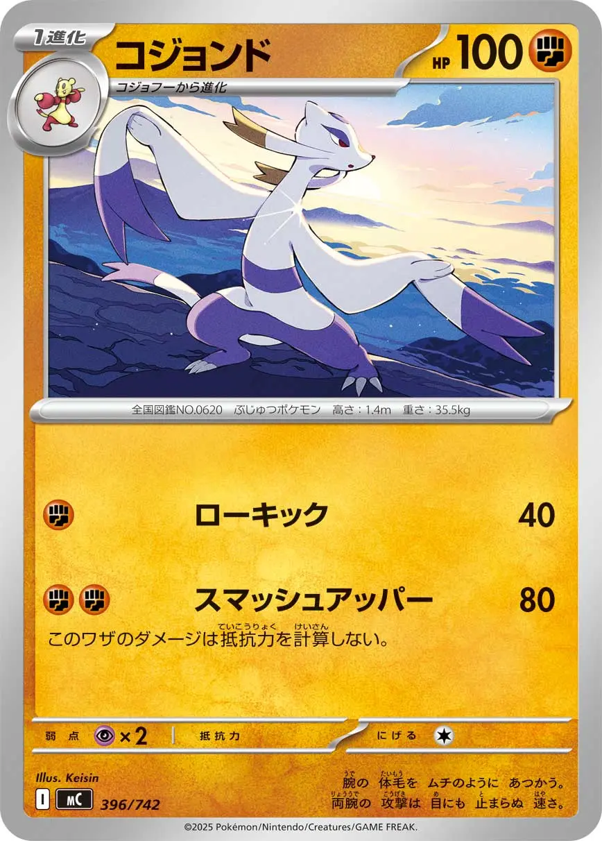 | 【ワザ】 [闘] ローキック 40 [闘][闘] スマッシュアッパー 80 このワザのダメージは抵抗力を計算しない。 | ||