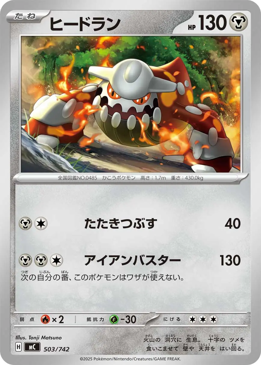 | 【ワザ】 [鋼][無] たたきつぶす 40 [鋼][鋼][無] アイアンバスター 130 次の自分の番、このポケモンはワザが使えない。 | ||