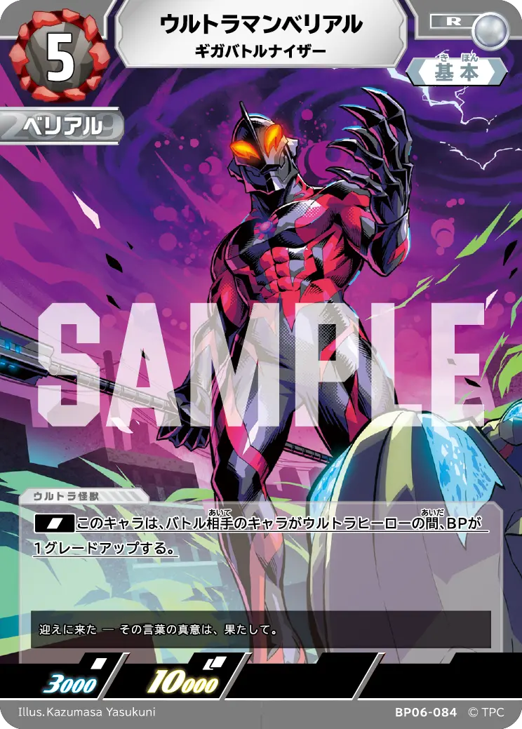 | [SIN]このキャラは、バトル相手のキャラがウルトラヒーローの間、BPが1グレードアップする。 | ||