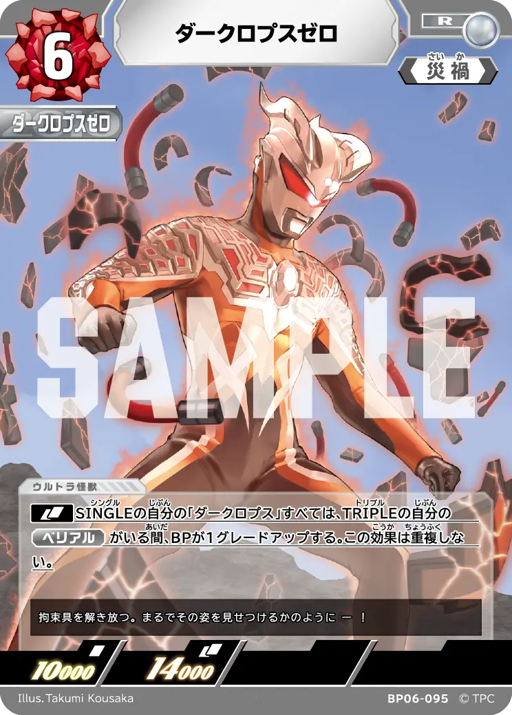 | [DBL]SINGLEの自分の「ダークロプス」すべては、TRIPLEの自分の 『ベリアル』 がいる間、BPが1グレードアップする。この効果は重複しない。 | ||