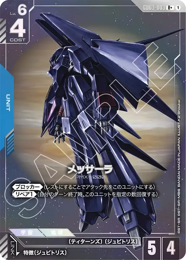 | 《ブロッカー》(レストにすることでアタック先をこのユニットにする) 《リペア1》(自分のターン終了時、このユニットを指定の数回復する) | ||