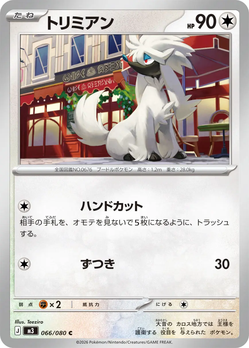 | 【ワザ】 [無] ハンドカット 相手の手札を、オモテを見ないで5枚になるように、トラッシュする。 [無] ずつき 30 | ||