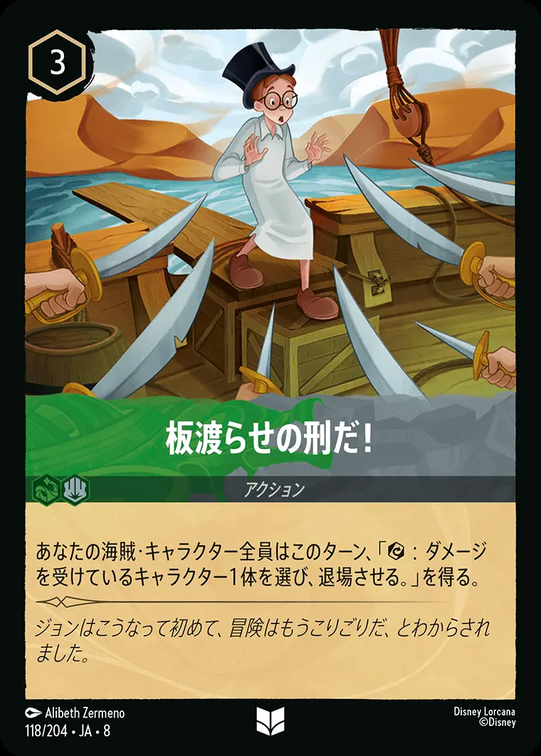 あなたの海賊・キャラクター全員はこのターン、「 : ダメージを受けているキャラクター1体を選び、退場させる。」を得る。