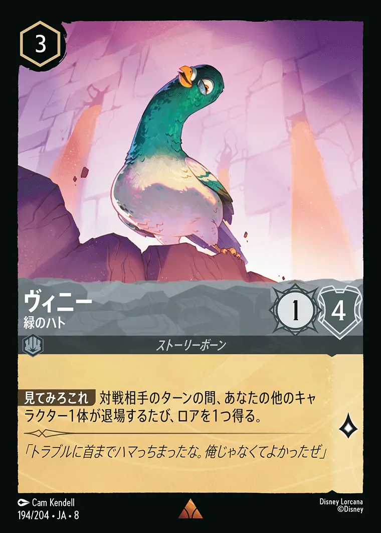 | 【見てみろこれ】 対戦相手のターンの間、あなたの他のキャラクター1体が退場するたび、ロアを1つ得る。 | ||