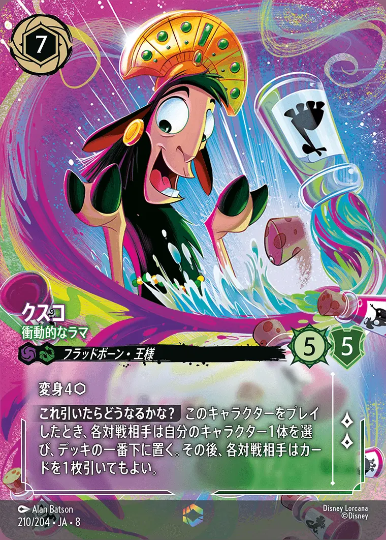 | 変身4 【これ引いたらどうなるかな?】 このキャラクターをプレイしたとき、各対戦相手は自分のキャラクター1体を選び、デッキの一番下に置く。その後、各対戦相手はカードを1枚引いてもよい。 | ||
