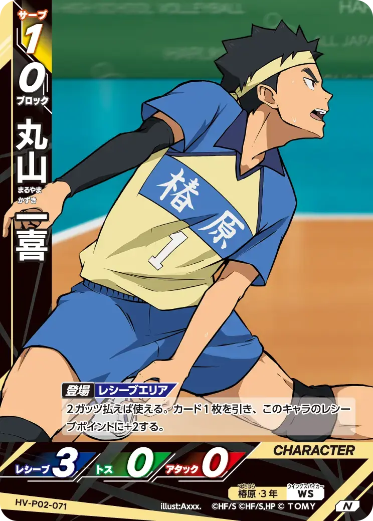 | 2ガッツ払えば使える。カード1枚を引き、このキャラのレシーブポイントに+2する。 - | ||