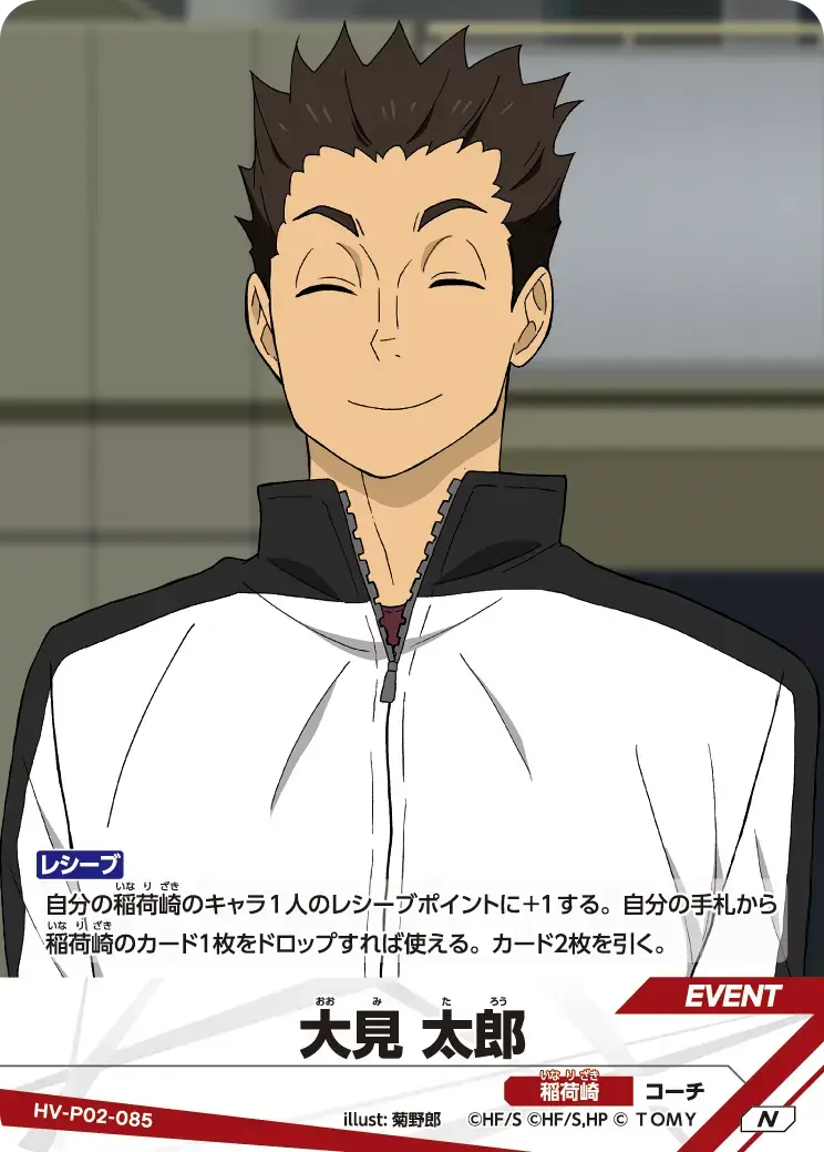 | 自分の稲荷崎のキャラ1人のレシーブポイントに+1する。自分の手札から稲荷崎のカード1枚をドロップすれば使える。カード2枚を引く。 - | ||