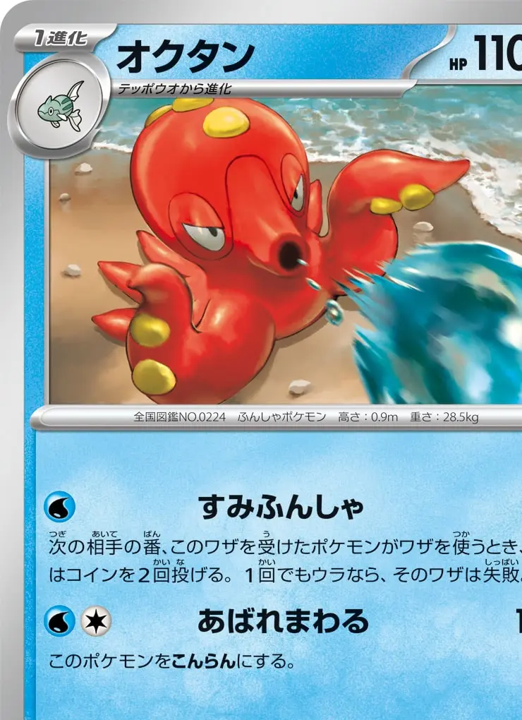 | 【ワザ】 [水] すみふんしゃ 30 次の相手の番、このワザを受けたポケモンがワザを使うとき、相手はコインを2回投げる。1回でもウラなら、そのワザは失敗。 [水][無] あばれまわる 120 このポケモンをこんらんにする。 | ||