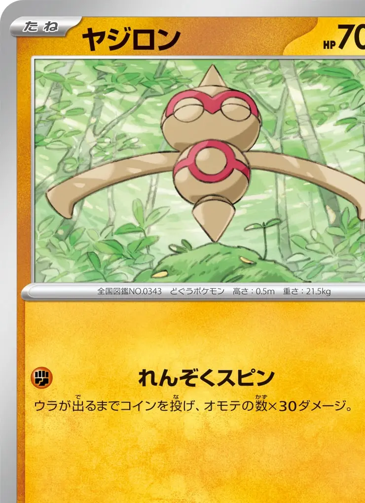 | 【ワザ】 [闘] れんぞくスピン 30× ウラが出るまでコインを投げ、オモテの数×30ダメージ。 | ||