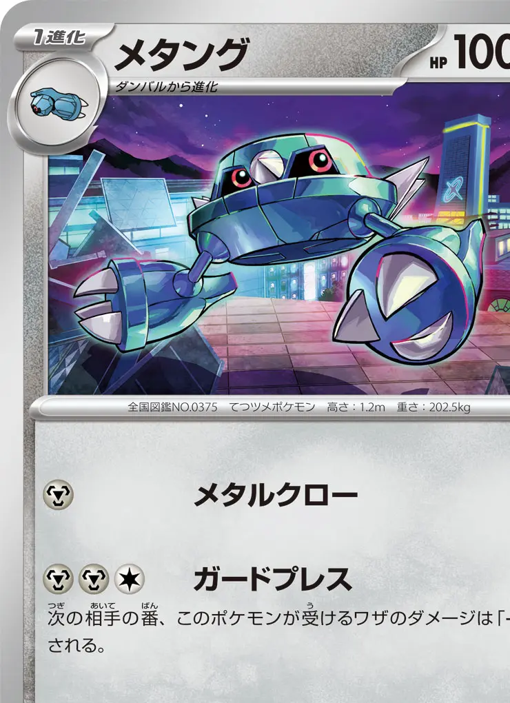 | 【ワザ】 [鋼] メタルクロー 30 [鋼][鋼][無] ガードプレス 70 次の相手の番、このポケモンが受けるワザのダメージは「-30」される。 | ||