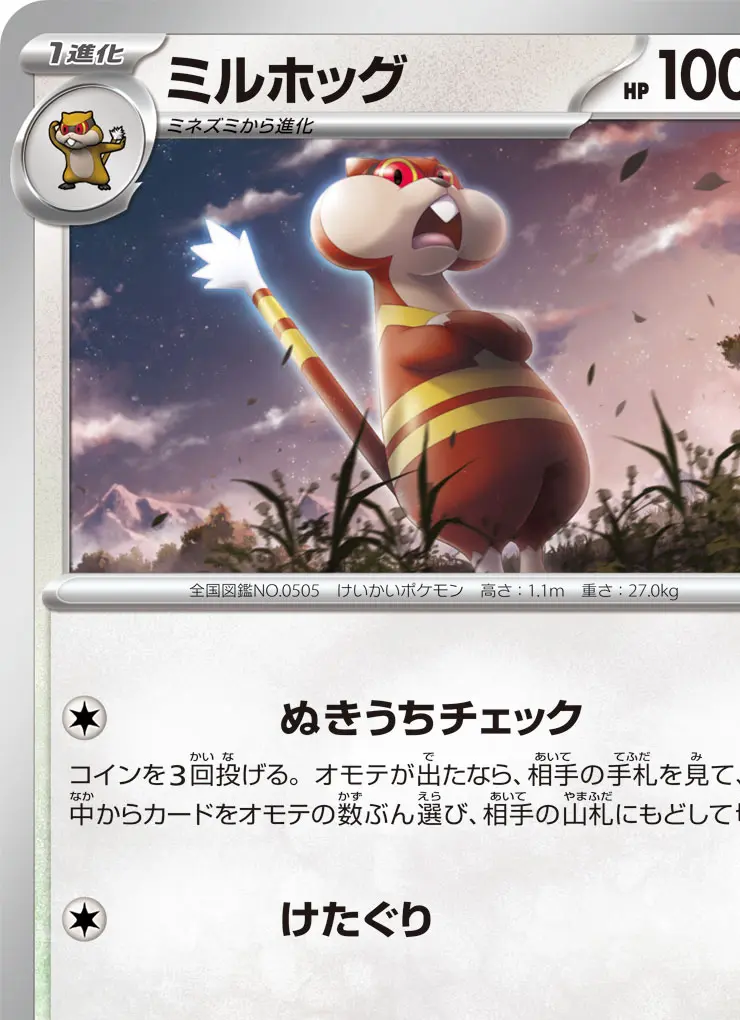 | 【ワザ】 [無] ぬきうちチェック コインを3回投げる。オモテが出たなら、相手の手札を見て、その中からカードをオモテの数ぶん選び、相手の山札にもどして切る。 [無] けたぐり 50 | ||