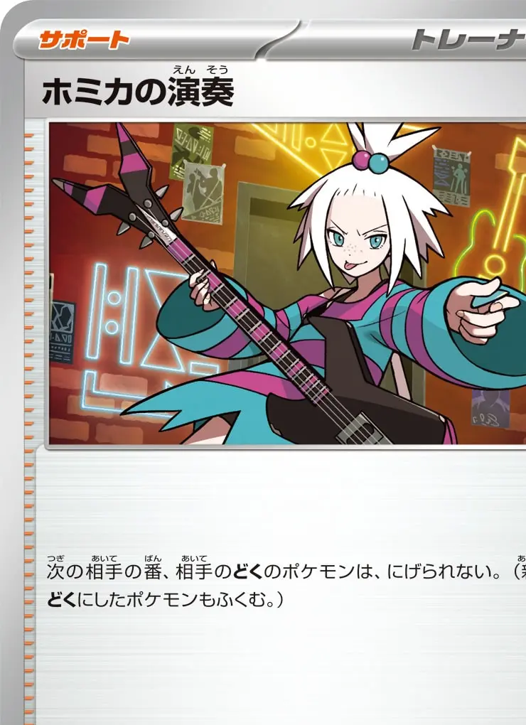 | 【サポート】 次の相手の番、相手のどくのポケモンは、にげられない。(新しくどくにしたポケモンもふくむ。) サポートは、自分の番に1枚しか使えない。 | ||