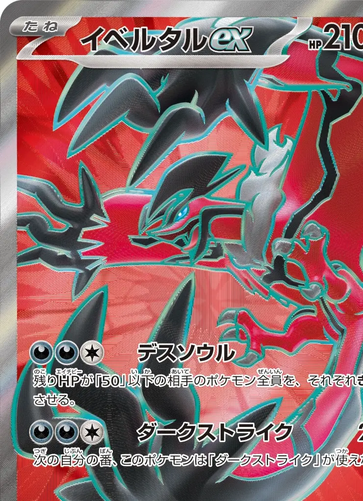 | 【ワザ】 [悪][悪][無] デスソウル 残りHPが「50」以下の相手のポケモン全員を、それぞれきぜつさせる。 [悪][悪][無] ダークストライク 210 次の自分の番、このポケモンは「ダークストライク」が使えない。 【特別なルール】 ポケモンexがきぜつしたとき、相手はサイドを2枚とる。 | ||